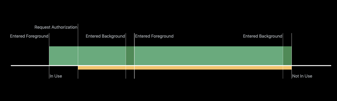 2. 앱이 백그라운드로 돌아가고, 위치 정보를 사용이 만료될 까지 충분히 시간이 다시 지나고, 앱이 포그라운드 상태로 복귀할 때