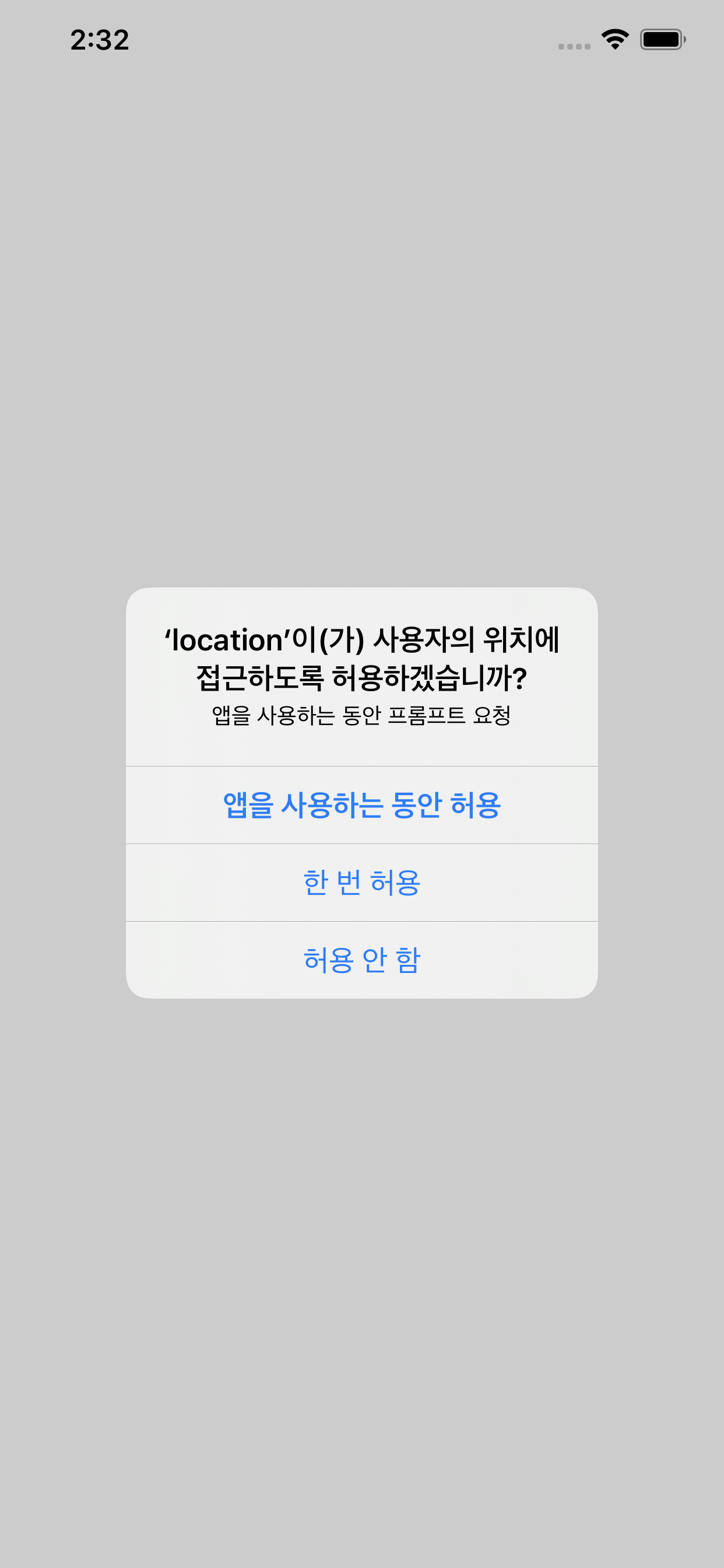 임시적 허용 상태에서는 앱을 사용하는 동안 위치를 받아낼 수 있습니다.