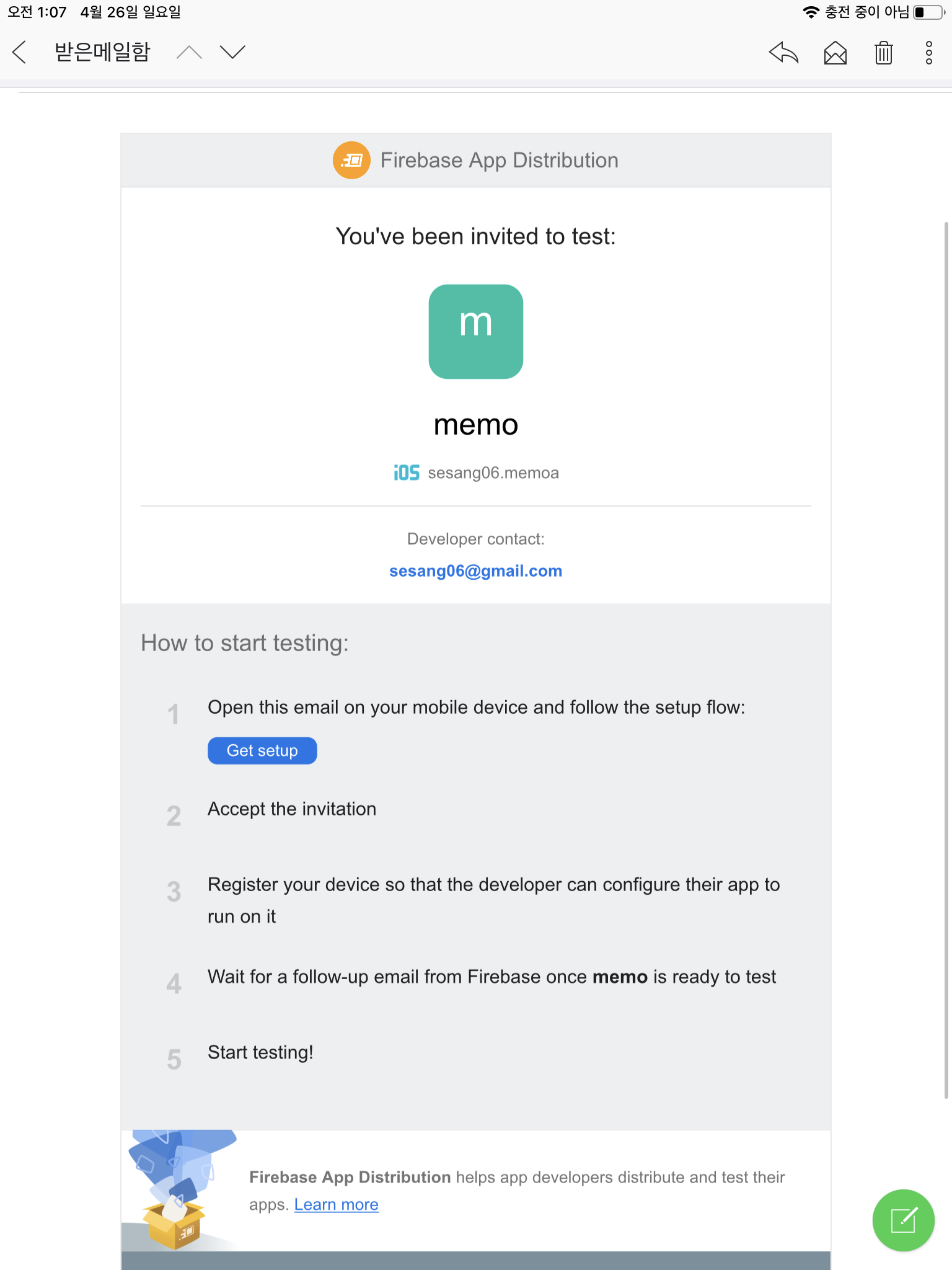 파이어베이스 앱 배포를 쓰면 테스트플라이트에 뜨기까지의 시간 지연을 건너뛸 수 있습니다.