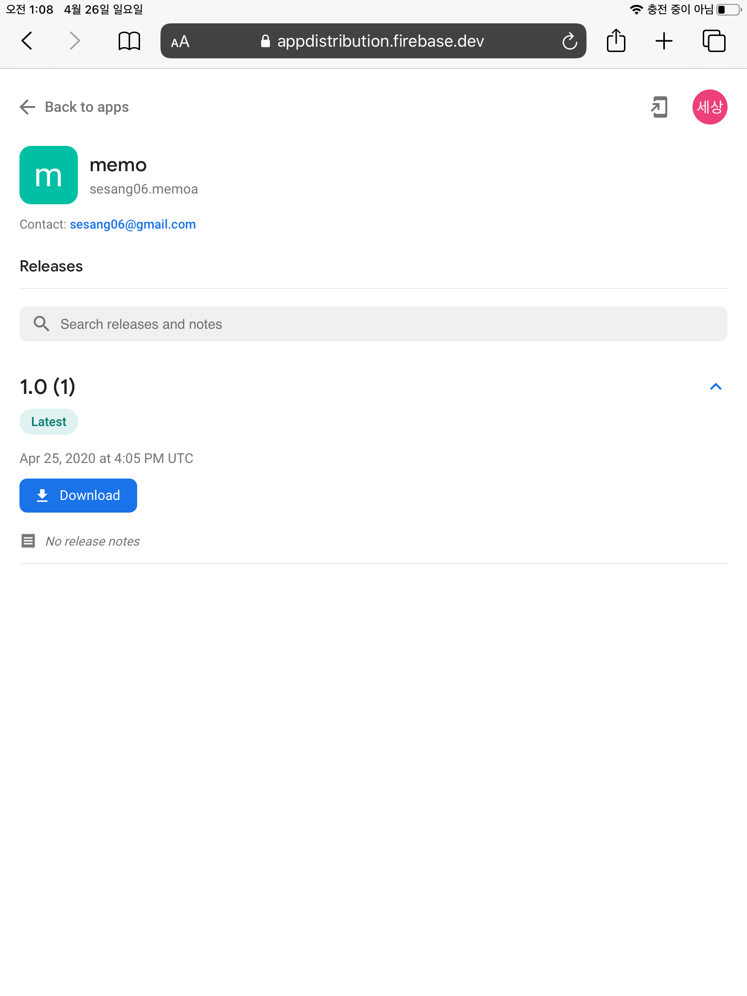 이제 Download 를 눌러서 앱을 다운받을 수 있습니다.