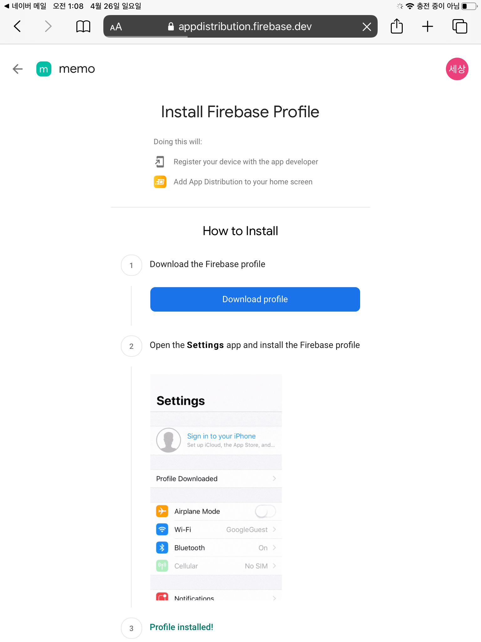 Download Profile 을 누르고, 설정에 가서
