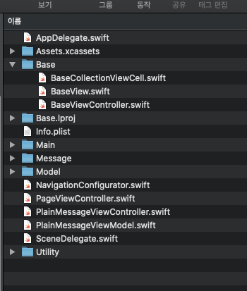 - 폴더 트리 구조와 xcode 의 파일 계층이 정확히 1:1 대응되게 빌드됩니다. 파인더로 정리할 수도 있고, 굳이 yml 파일에서 폴더 계층을 명시해줄 필요도 없습니다. 컴파일할 최상위 폴더만 명시하면 알아서 잘 빌드해 줍니다.