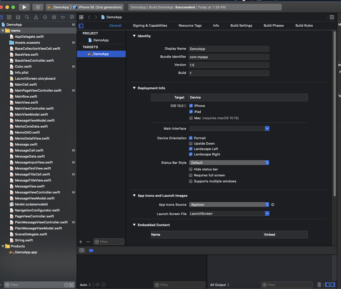name: DemoApp targets: DemoApp: settings: base: INFOPLIST_FILE: memo/Info.plist PRODUCT_BUNDLE_IDENTIFIER: com.myapp type: application platform: iOS deploymentTarget: 13.0 sources: [memo]하나씩 설명하겠습니다.