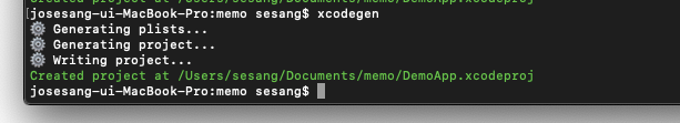 xcodegen generate을 실행시키면, 자동으로 xcodeproj 파일을 만들어 줍니다.